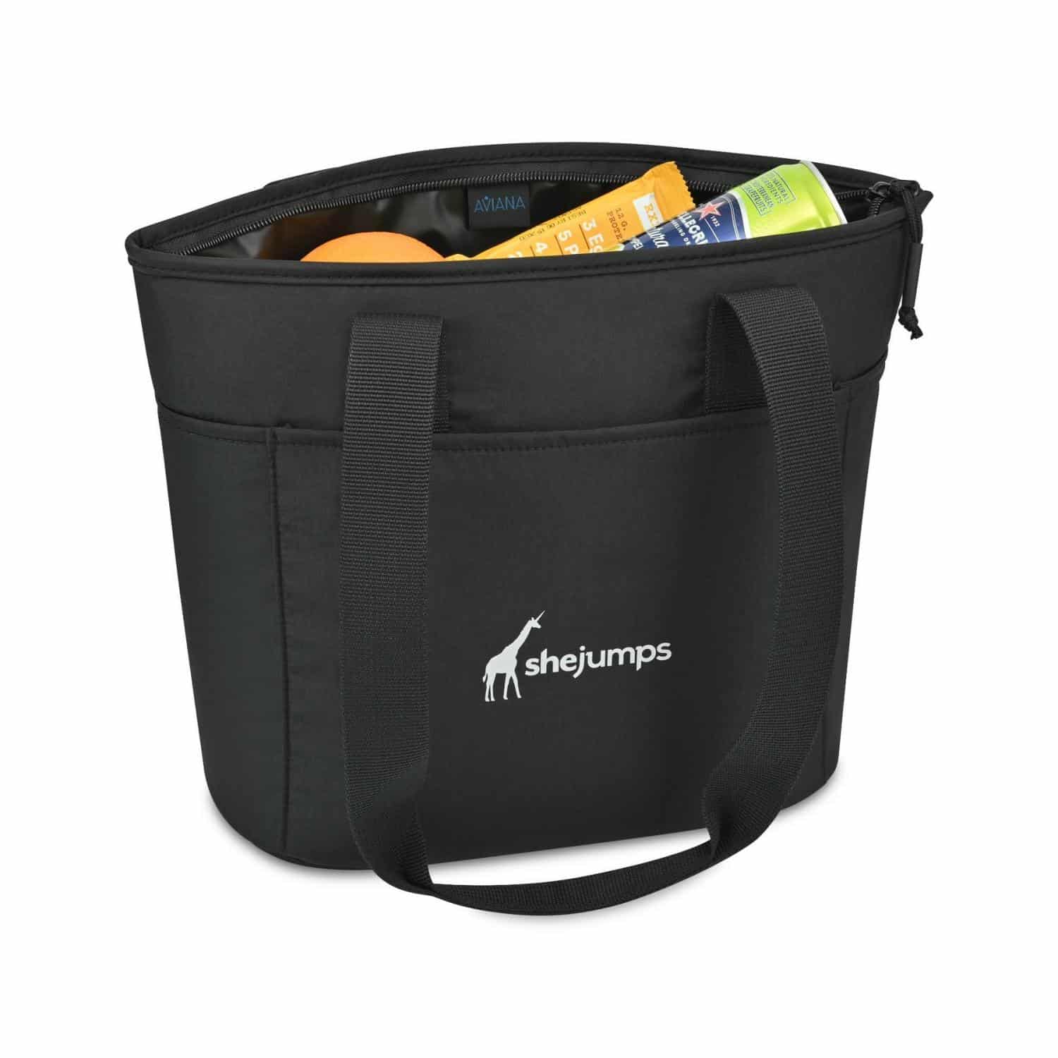 This recycled cooler tote blends modern style with everyday function. Designed with a 9 can capacity and PEVA lined interior to help maintain temperature, it keeps food and drinks ready for the day ahead. The spacious silhouette fits daily essentials, while an expandable back pocket holds your water bottle. Comfortable straps make it ideal for commuting, workouts, and weekend outings. Complies with CPSIA, Prop 65. 5.62″ W x 10″ H x 13.75″ L